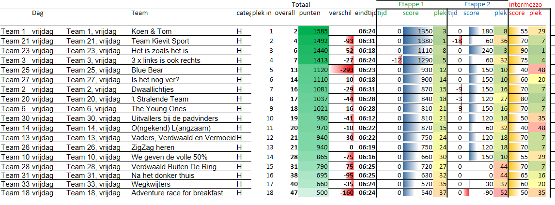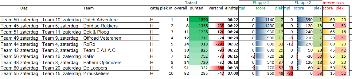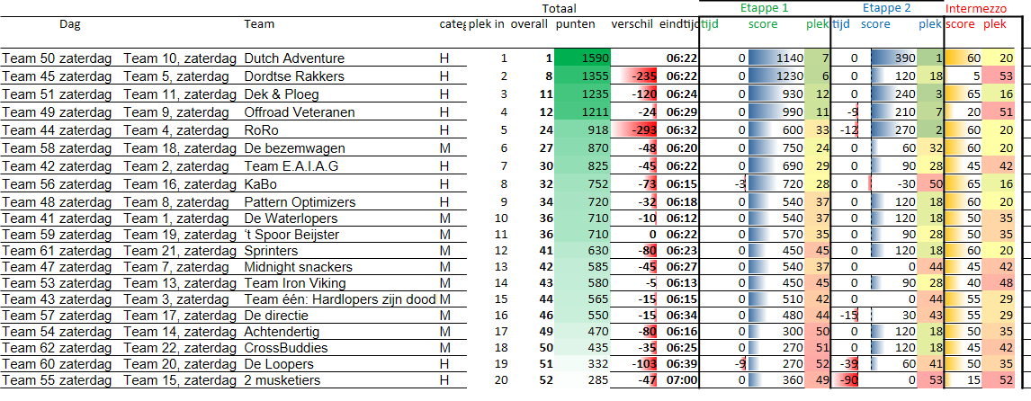 - Aan het Intermezzo besteedden veel teams toch behoorlijk veel tijd. Al rekende ik hier boven uit dat dat vaak een goede keuze was. Maar dat zit natuurlijk niet in de 34 km die ik net noemde.