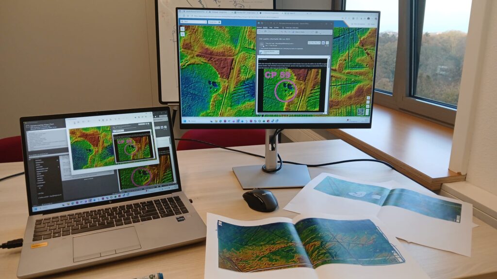Vervolgens weer een leuke: CP59. Een wit vlekje op de kaart, maar gelukkig was de benodigde informatie al ruim tevoren per email naar alle teams gestuurd. Dat leverde zelfs hele speurtochten online op waardoor ze zich bij arcgisonline.nl hebben moeten afvragen waarom zoveel mensen ineens geïnteresseerd waren in drie kuilen in de Bestse Bossen. En waarom specifiek in die ene kleine kuil ten zuiden van die twee grotere. Behalve 2 teams dan, die meer interesse hadden in de grote twee, waar een vals CP kaartje hing…