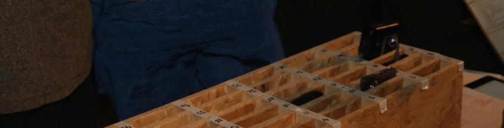 Nieuw! Van alles was nieuw deze N8-run, maar misschien wel het opvallendst was de digitale-antwoorden-invoer. Na gehannes de vorige keer (en ook de keren daar voor) met het overhaast invoeren van de antwoorden – het is 2:00 ‘s nachts en iedereen wil naar zijn mandje – en het onvermijdelijk verkeerd lezen van een paar ingevulde nummers, enen die zevens lijken en vieren die negens blijken, besloten we dat het anders moest. Diverse ideeën sneuvelden, van multiple choice, of punch cards, of iets elektronisch, tot gebruik maken van uit te rekenen checksums: alleen het zelf laten invoeren bleef over. We hadden al eens zelf met een telefoon op zak een race gelopen, waarbij onderweg QR-codes moeten worden gescand, maar dat was erg onhandig. Telefoon pakken, ontgrendelen, push-meldingen weg klikken, QR-scannen, verzenden, vergrendelen, opbergen, etc. Dus we besloten dat de telefoons “thuis” bleven en alleen voor het invoeren van de CP codes zouden worden gebruikt, na elke etappe. Patrick maakte een mooie kist met 42 vakjes, 1 per team, waar ze veilig in konden. Iedereen deed mee, al boden we ook de mogelijkheid ouderwets een papieren strookje in te leveren.