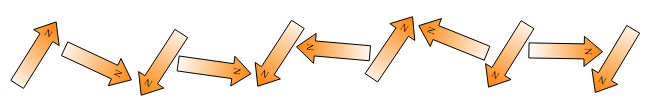 Makkelijkst was gewoon pijltjes te tekenen, waar de naald heen wees. En dan tijdens het lopen van de route de naald achtereenvolgens die zelfde richtingen op te laten wijzen. Of de pijltjes te spiegelen, en dan te lezen als de te lopen koersen.